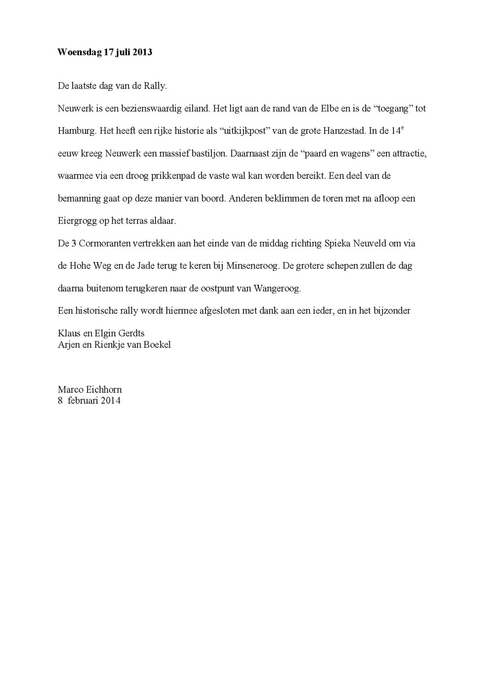 Rally 2013 – Programme – Lauwersoog to Neuwerk (Dutch)